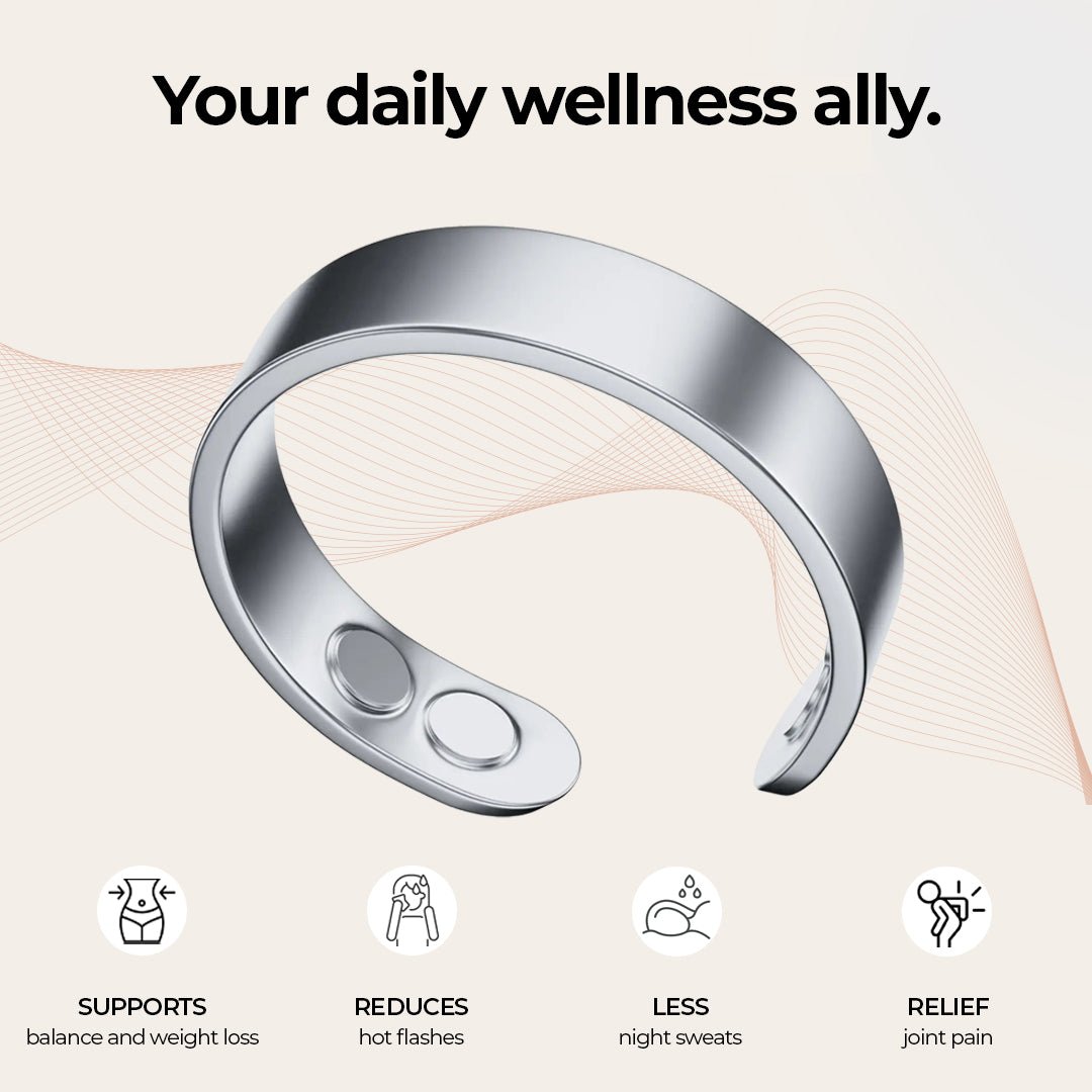 The ring stimulates acupressure points known for their benefits on the nervous system, circulation and overall well-being: