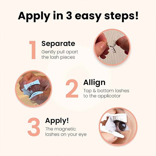 Each eye uses two magnetic lash pieces. These pieces snap together around your natural lashes, providing a secure hold without the need for glue.